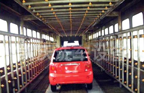 汽車淋雨線是車身密封檢測(cè)的重要裝置,主要由輸送板鏈、淋雨室、噴淋系統(tǒng)、吹干系統(tǒng)及控制系統(tǒng)組成。